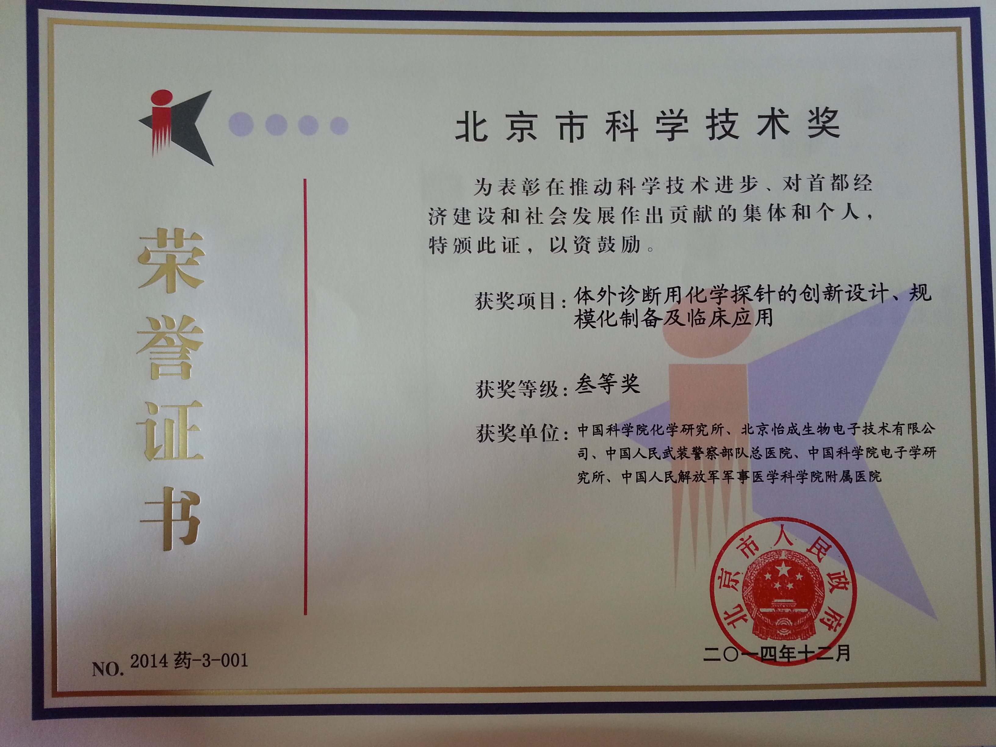 奖项:2014年度北京市科学技术奖三等奖